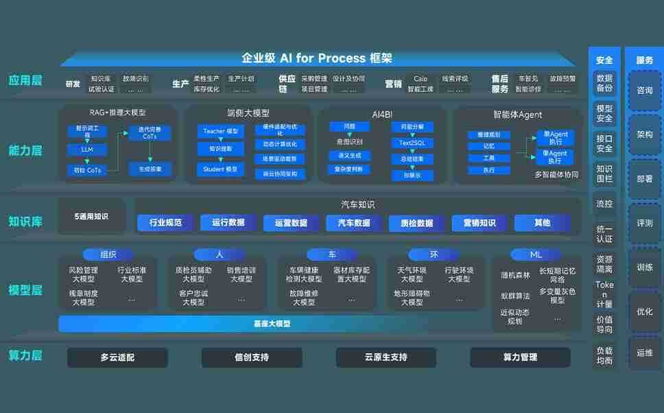 AG尊龙凯时问学智车解决方案是一套基于AI技术的汽车行业智能化系统,,覆盖从底层算力到顶层AI应用的全栈方案。。方案由算力层、、、、模型层和应用层组成:算力层,,,方案支持多种一体机配置,,具备云端灵活部署、、、、多云适配以及动态优化计算资源的能力;模型层,,,AG尊龙凯时问学平台版提供了企业级AI应用一站式构建与管理平台,,,支持基于后训练强化技术的汽车企业专属模型的训练、、、评测和运营;应用层,,,,AG尊龙凯时问学DeepSeek版提供包括超级员工、、智能招采、、、智能营销、、智能客服、、、、AI for BI等一系列解决方案,,可助力汽车行业实现数字化转型,,,让管理更智能、、响应更敏捷。。。