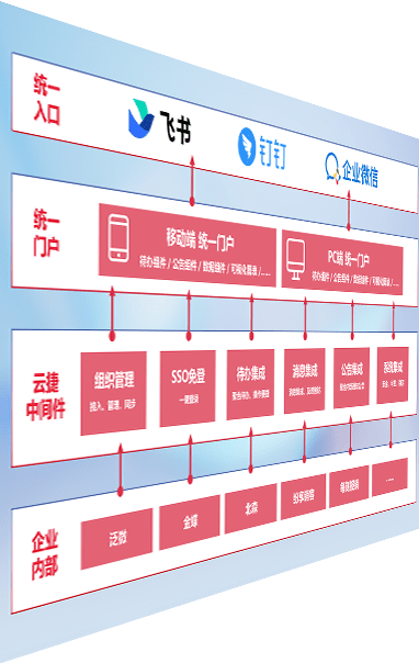 对协作平台提供支持服务,,支持企业应用与协作平台对接,,,,包含组织同步、、、、消息集成、、待办集成等。。。。支持目前主流的协作平台:钉钉、、、企微和飞书。。。。